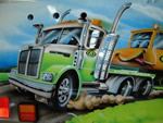 Airbrushing TrucksAuto airbrushing for transport businesses or Super Truck motorsports - custom truck airbrushing will make your vehicle stand out while on the road or on the track. Custom airbrush artist Dean is a master with truck lettering, pinstriping, vehicle signage and truck curtain painting. |